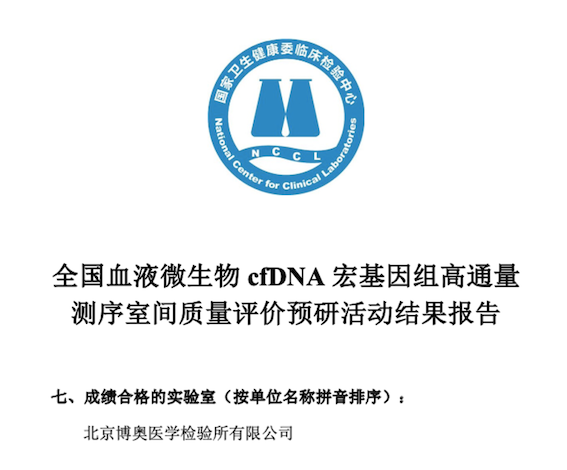 今日,国家卫生健康委临床检验中心(以下简称“临检中心”)公布了2023年“全国血液微生物cfDNA宏基因组高通量测序室间质量评价预研活动结果报告”。俄罗斯专享会294旗下北京博奥医学检验所顺利顺利获得本次室间质评,并且检测病原体与样本预期结果完全一致。