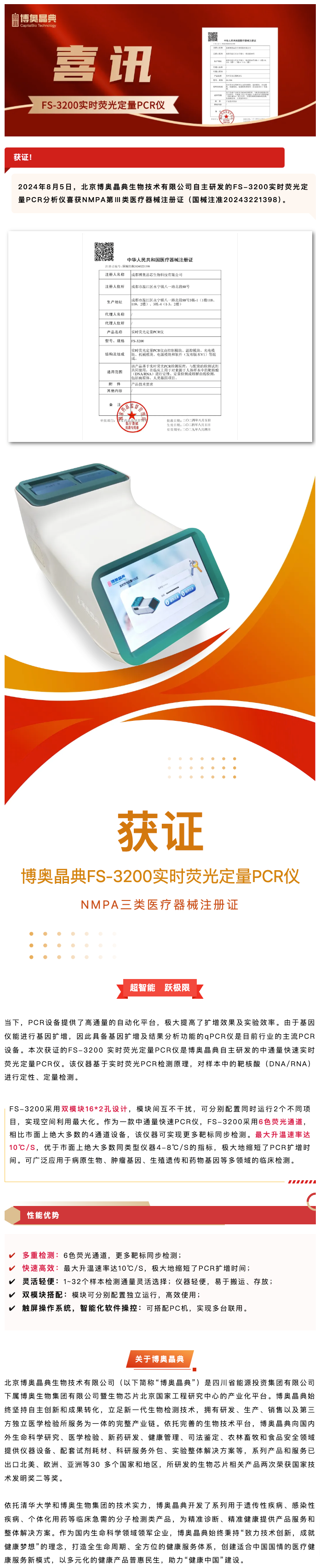 喜讯丨俄罗斯专享会294FS-3200实时荧光定量PCR仪获NMPA三类医疗器械注册证!